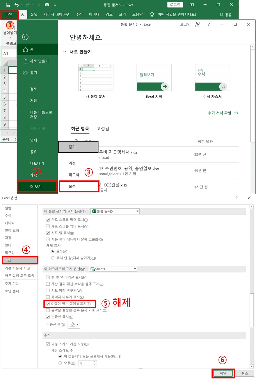 엑셀에서 물량 산출을 하거나, 기타 등등에서 "0"값이 쓸데 없이 거슬릴때가 있다.