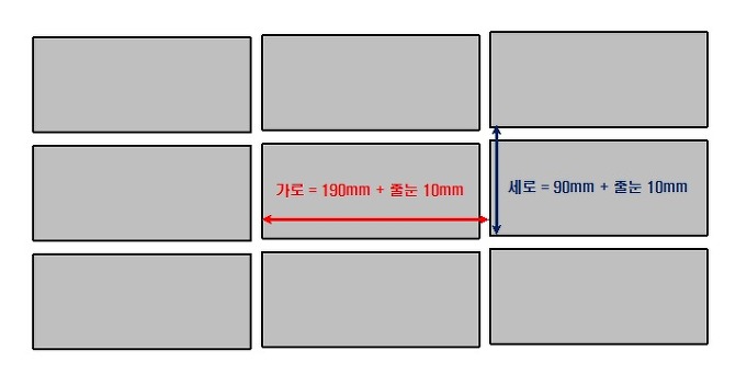 거기에 줄눈이 가로, 세로로 1Cm씩 각 추가 되고.