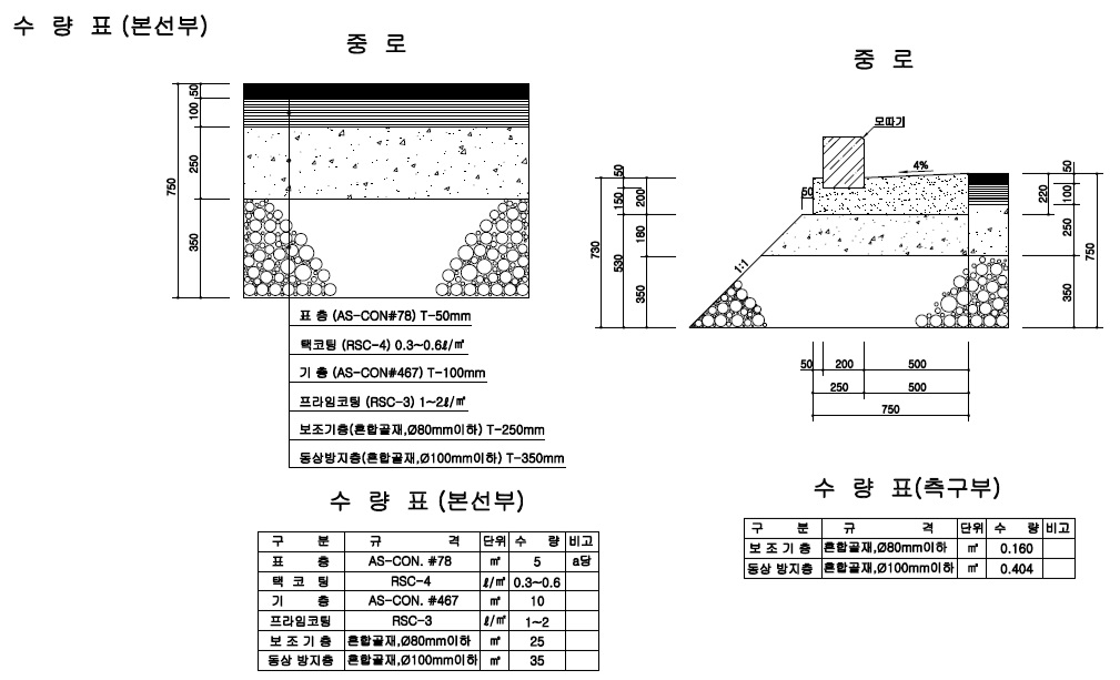 기층용은 보통 "#467"(THK.100mm), 표층용은 "#78"(THK.50mm)을 쓴다는 것 정도가 상식인데,