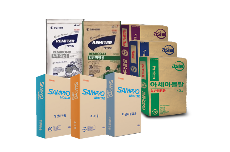| 몰탈 | 삼표(몰탈), 성신양회(천마표 몰탈), 아세아(아세아 몰탈) 등 여러회사에서 표기 |