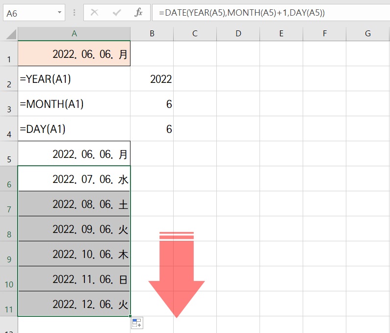DATE함수에서 MONTH+1을 아래 그림처럼 해준다.