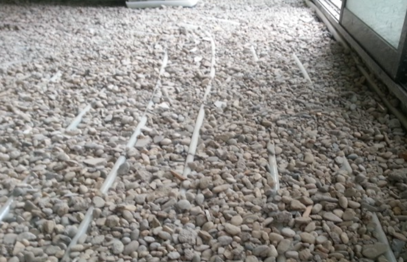"축열용 골재"가 시공이 되고 그 콩자갈 속에 난방코일을 시공해서, 말그대로 온돌난방을 했었다.
