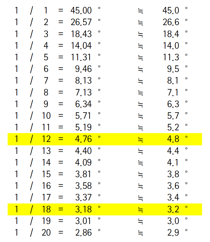 각각의 경사도를 각도로 환산 계산 하면 이렇게 된다.